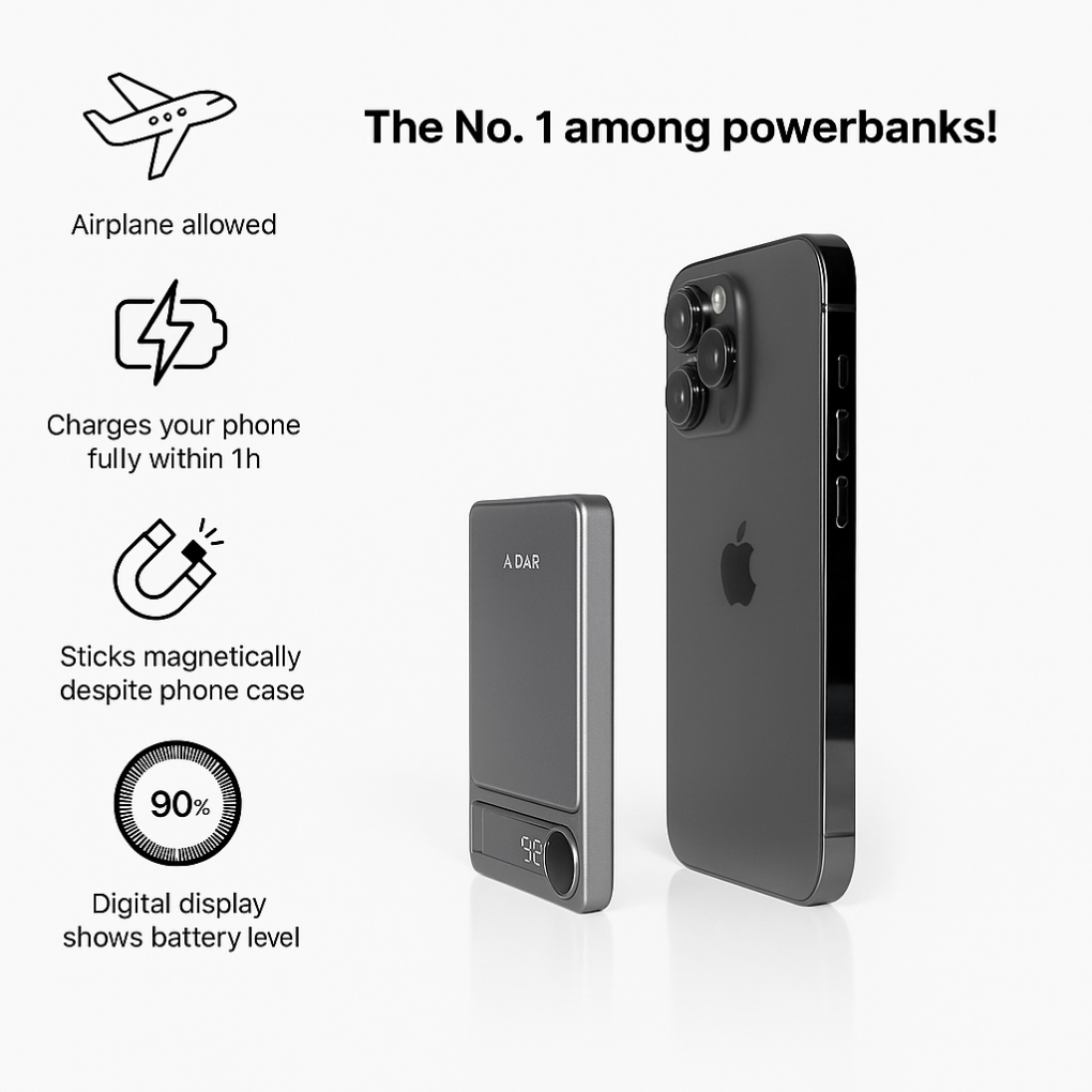 The world’s thinnest powerbank (0.8 cm) combines sleek metallic design and ultra-portable performance, keeping your devices charged anywhere in style.